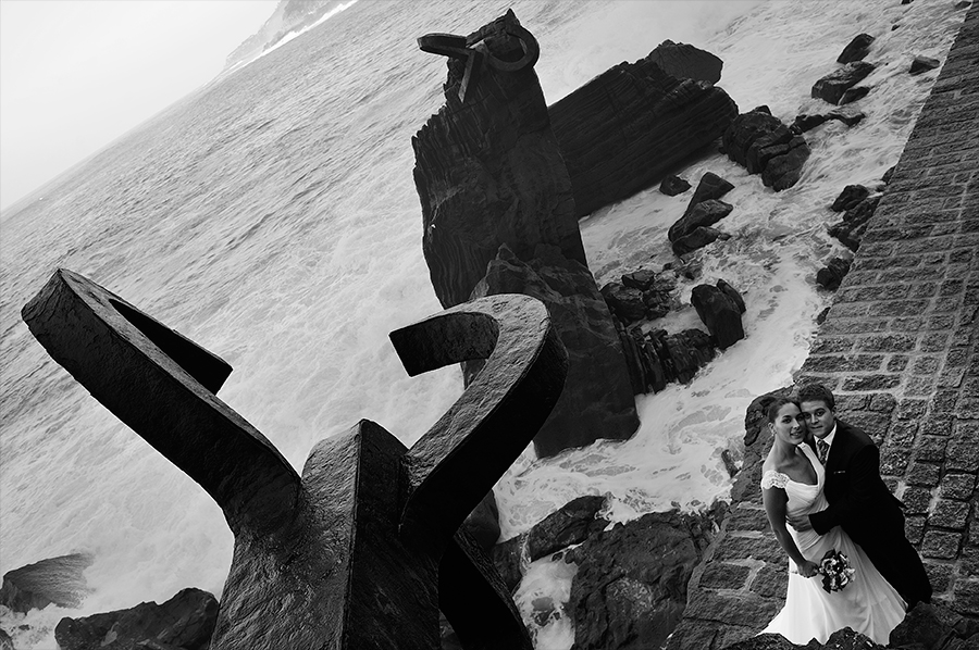 Fotografía de boda en el Peine de los vientos , Donostia (Guipuzcoa)