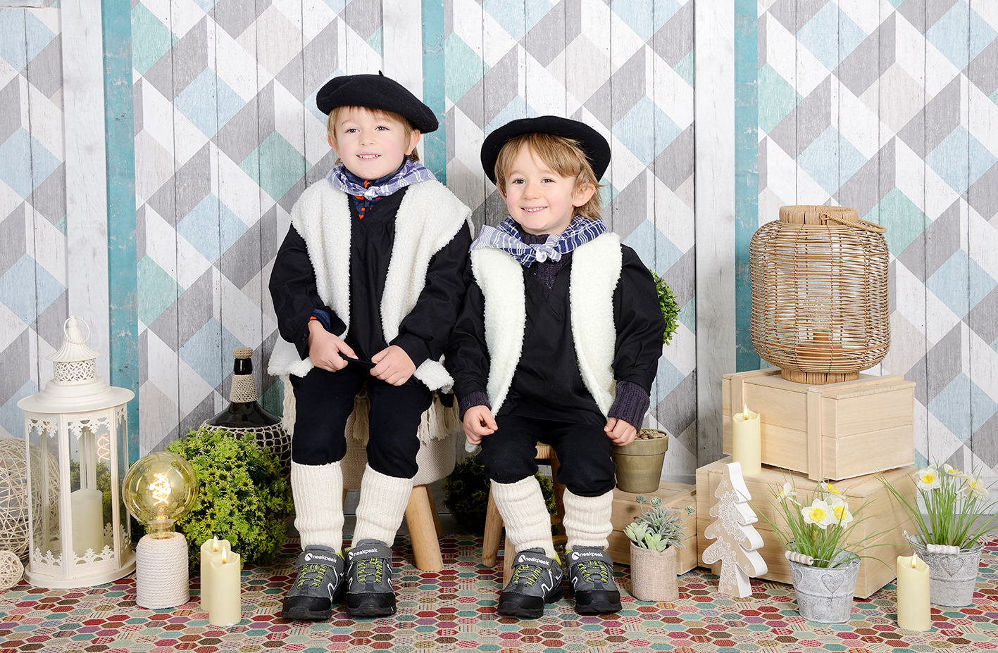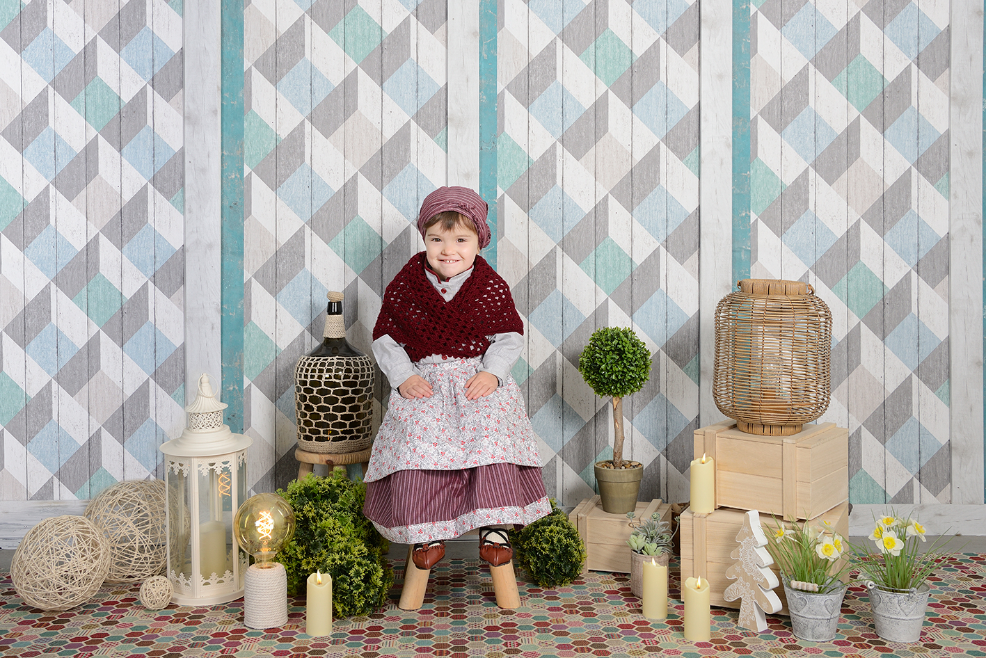 Fotografía de estudio + calendario de pared + 2 calendarios de cartera + 2 postales